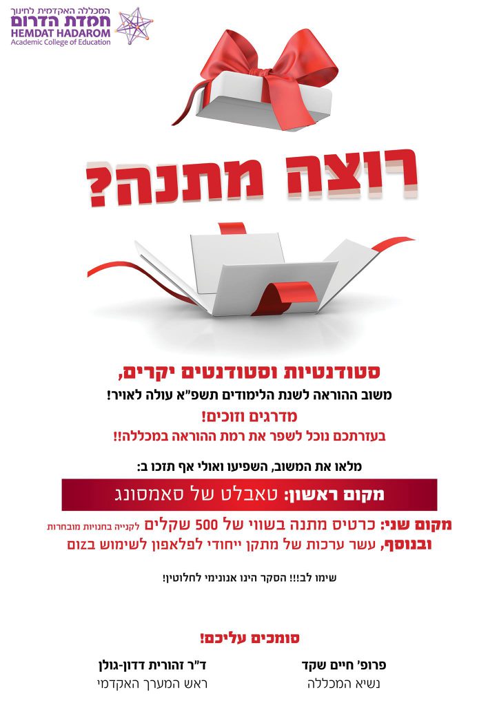 על איכות ההוראה במכללה, ואולי גם לזכות בפרסים שווים!