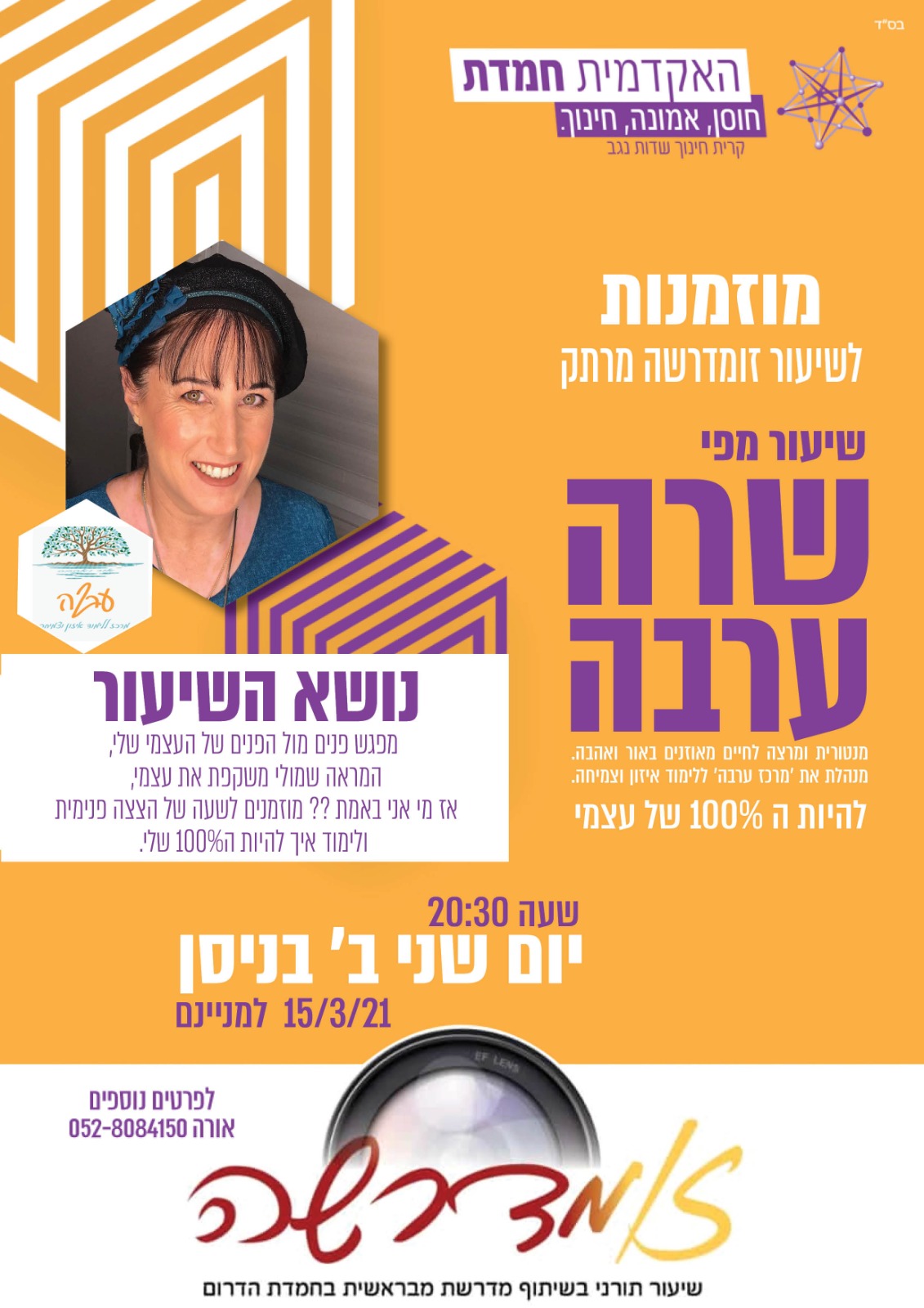 שיעור בזום-מדרשה: בנושא להיות ה-100% של עצמי